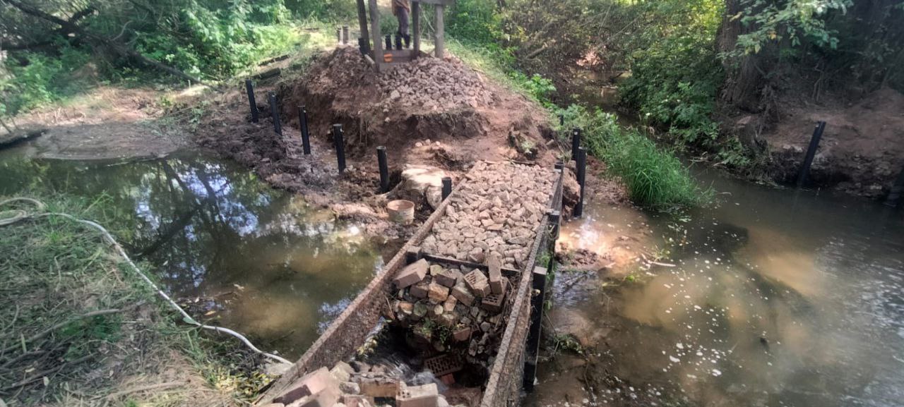 Компания «Сваекрутов» успешно выполнила проект по укреплению берега реки Нара в г. Серпухов Московской области. Заказчик столкнулся с проблемой обрушения почвы на участке реки, где планировалось строительство дорожек. Сильный уклон и постоянные обвалы земли препятствовали выполнению работ, что могло привести к дальнейшей эрозии берега.